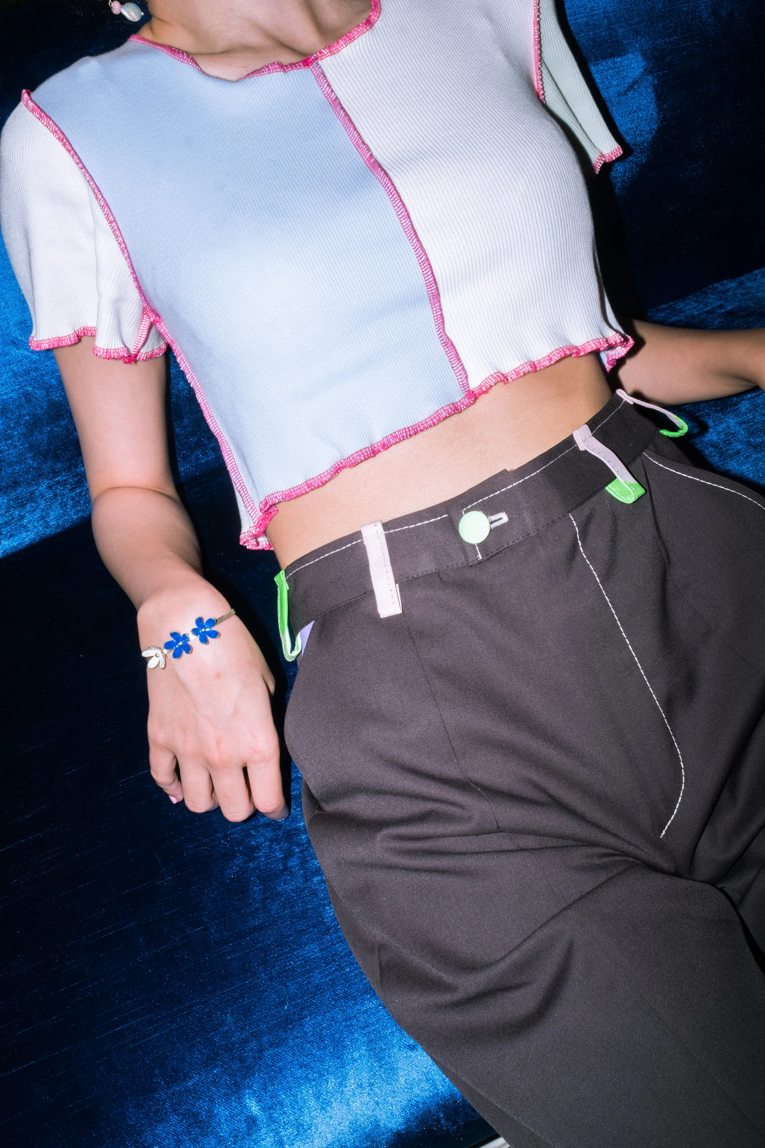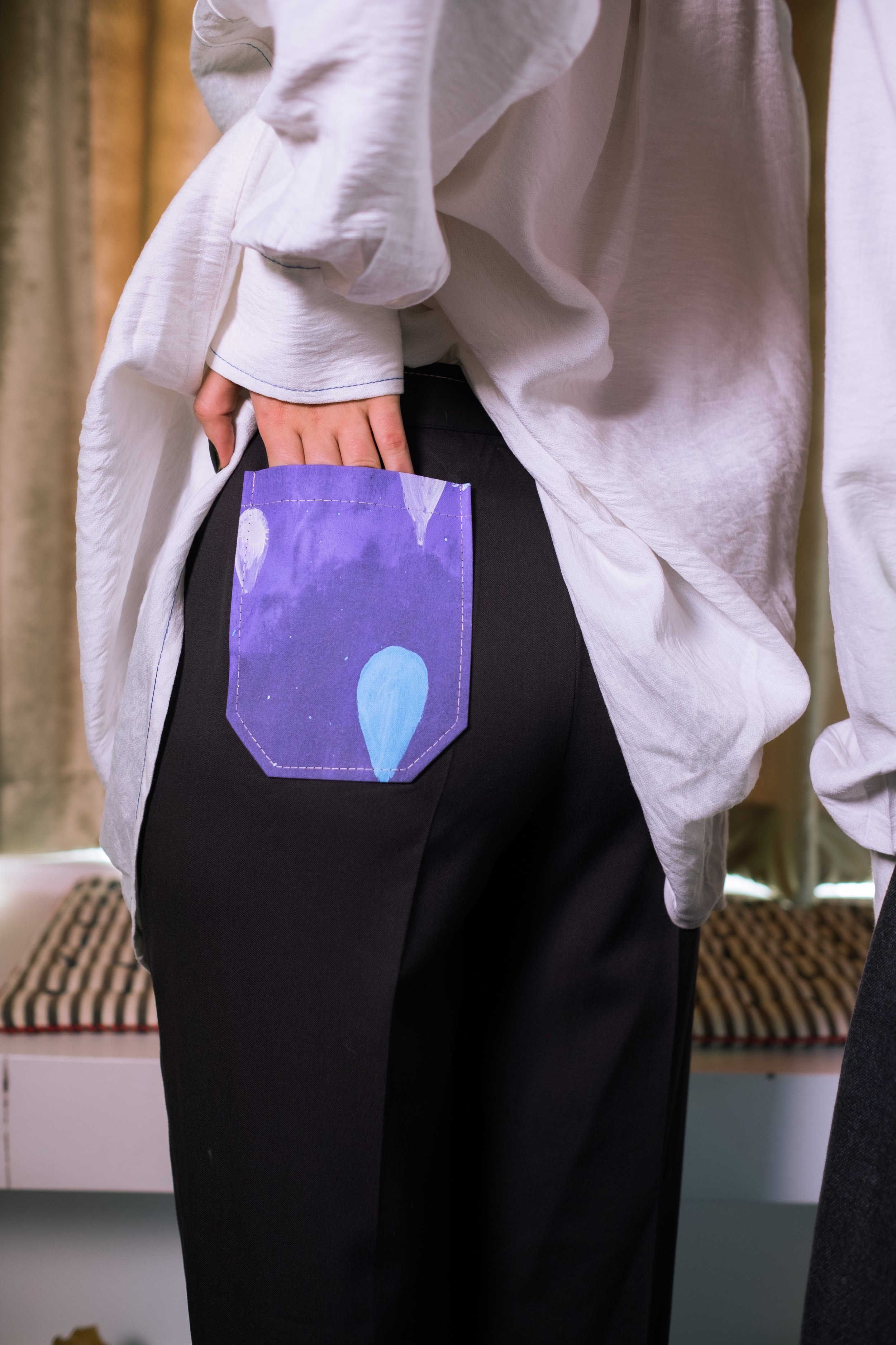 Our pursuit in this collection is to create a new vision of the world residing in Niki's paintings, which results in a juxtaposition of colors and clothes that are presented in her paintings. Playing around with sewing and design structures, and using light to flashy ranges of the same color, are two of the most recurring features of this collection.