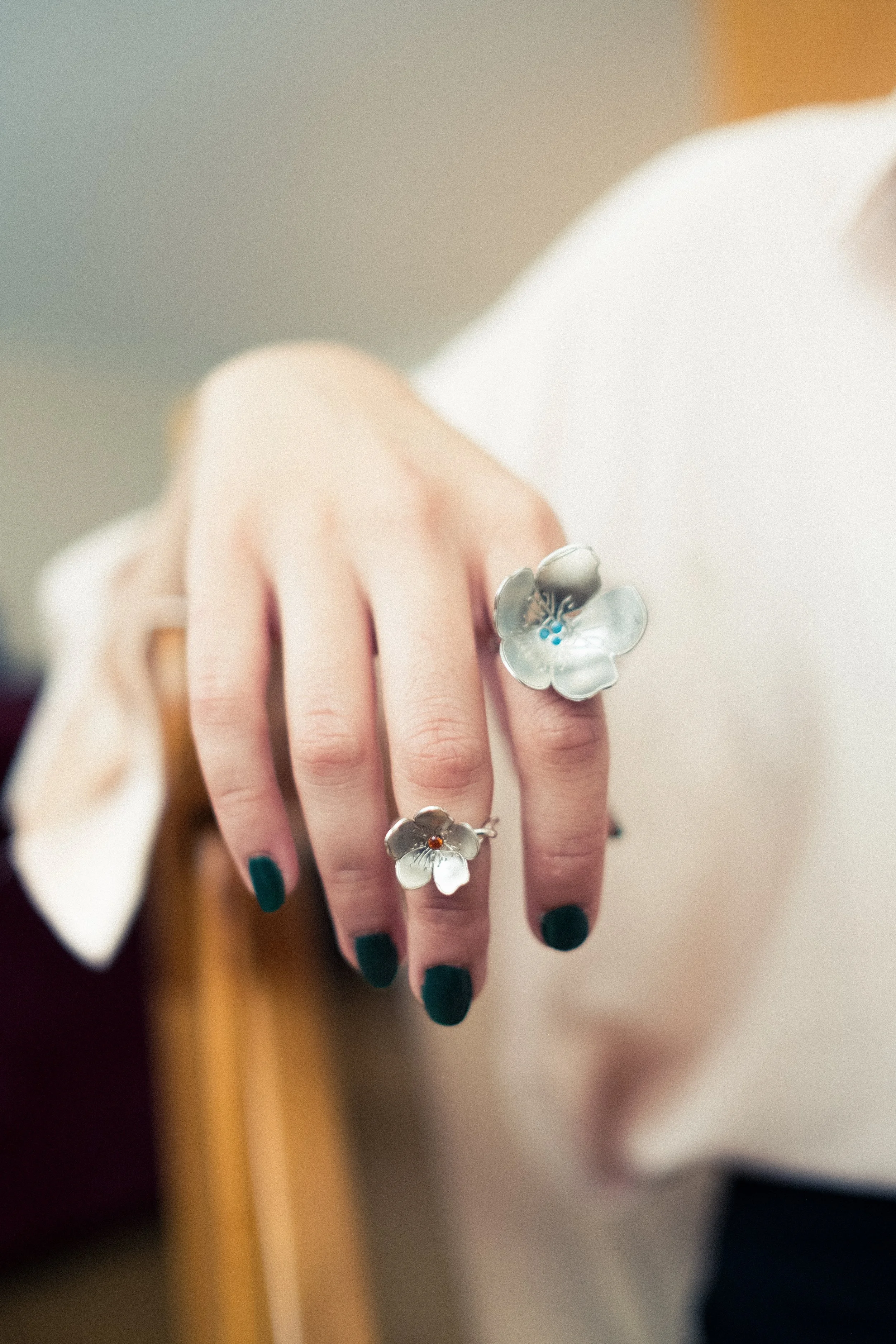 Flower acts as a well-known and stable element; If we change the color of the flowers, or even see the shadow of a flower, they can still be recognizable from the lines covering their silhouettes. The permanent and indelible image of a flower is a sign of strength and stability. This juxtaposition of strength and elegance is well represented in this collection by twisting and giving silver (as a symbol of hardness) a flowery shape and finally adding color.